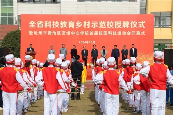 10月29日,全省科技教育鄉(xiāng)村示范校授牌儀式暨池州市貴池區(qū)高坦中心學(xué)校首屆校園科技運(yùn)動(dòng)會開幕式在貴池區(qū)高坦中心學(xué)校舉辦。省科協(xié)黨組成員、副主席紀(jì)光水,省青少年科技活動(dòng)中心主任汪曉東,池州市科協(xié)主席龍騰,區(qū)委常委、副區(qū)長汪賽榮,省、市、區(qū)有關(guān)部門負(fù)責(zé)人出席授牌儀式。