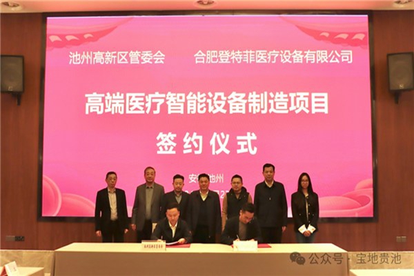 11月23日,池州高新區(qū)和合肥登特菲醫(yī)療設(shè)備有限公司簽署合作協(xié)議,高端醫(yī)療智能設(shè)備制造項(xiàng)目正式落地貴池。市委常委、區(qū)委書記馬勝利出席儀式并講話。區(qū)長錢松主持簽約儀式。合肥登特菲醫(yī)療設(shè)備有限公司董事長黃開先,安徽亞安集團(tuán)董事何亞飛,區(qū)委常委、池州高新區(qū)黨工委書記兼管委會主任方文生,副區(qū)長張亮,及有關(guān)區(qū)直部門、園區(qū)、企業(yè)主要負(fù)責(zé)人參加簽約。
