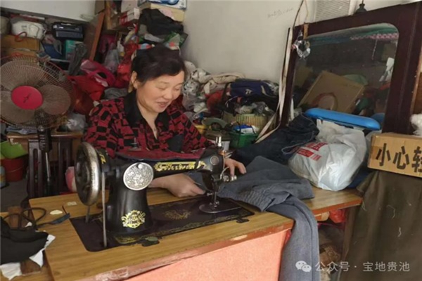 劉曉秀正是其中被發(fā)掘的達(dá)人之一,她熱愛(ài)縫紉,從事縫補(bǔ)至今已有三十余年,“當(dāng)時(shí)社區(qū)的工作人員了解到平日里我很喜歡縫紉,便詢問(wèn)我愿不愿意成為社區(qū)達(dá)人,我想著可以幫助到有需要的居民,還可以在閑暇時(shí)做做喜歡的事情,立馬答應(yīng)了?!眲孕阈χf(shuō)道。平日里居民需要縫補(bǔ)的衣物較多,于是,劉曉秀便將自己小區(qū)內(nèi)的車(chē)庫(kù)改造成了“愛(ài)心縫補(bǔ)站”,一套老式縫紉機(jī),再加上一個(gè)裝滿各種針線、紐扣、拉鏈的盒子,便是她的全部“裝備”,“只要社區(qū)需要,我就會(huì)一直堅(jiān)持下去。”