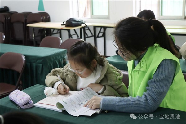 課間休息時間,社區貼心地為孩子們準備了熱水。12名返鄉大學生志愿者迅速化身為孩子們的知心大哥哥、大姐姐,陪伴他們嬉戲玩耍。充氣玩具球在孩子們手中傳遞,歡聲笑語回蕩在整個空間。角落里擺放的青少年讀物也吸引了不少孩子的目光,他們安靜地閱讀,沉浸在文字的奇妙世界里。“在這里既能學到知識,又能交到朋友,太開心啦!”現場小朋友們興奮地說。