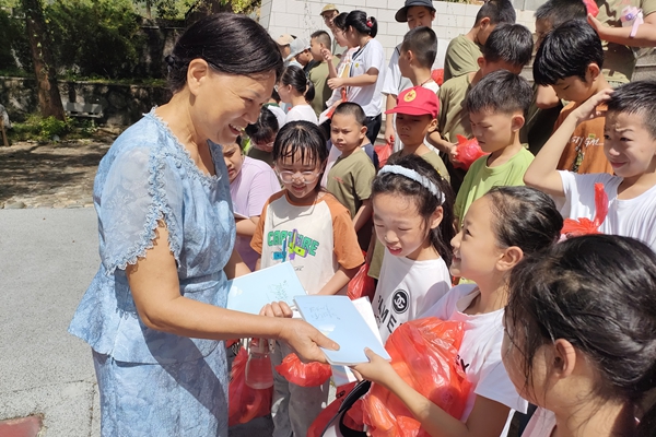 7月25日,區關工委一行帶著滿滿的關懷前往基地開展慰問活動。汪漪主任等人為貴池區及三所園區關工委共39名營員送上了精心準備的慰問品。他們還前往營地宿舍,實地察看孩子們的生活起居??吹胶⒆觽冃⌒∧昙o卻展現出堅強的意志和獨立的能力,大家紛紛豎起大拇指表示贊許。當聽到孩子們親切地喊著“謝謝爺爺、謝謝奶奶”時,他們心中滿是欣慰。此外,區關工委還為全市100名營員以及來自阜陽市太和縣的10名營員送去了學習用品,期待孩子們在夏令營中度過一段快樂難忘的時光。